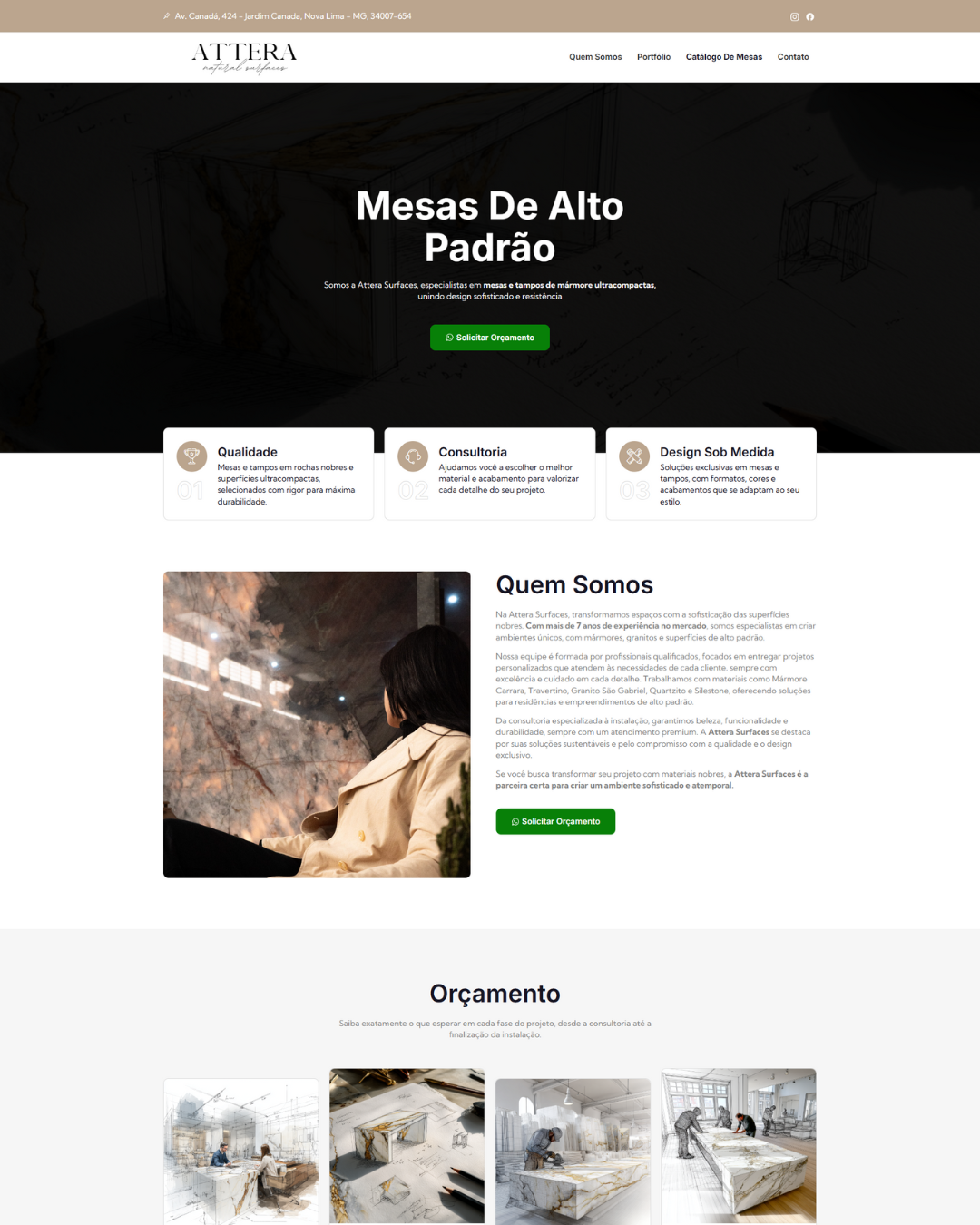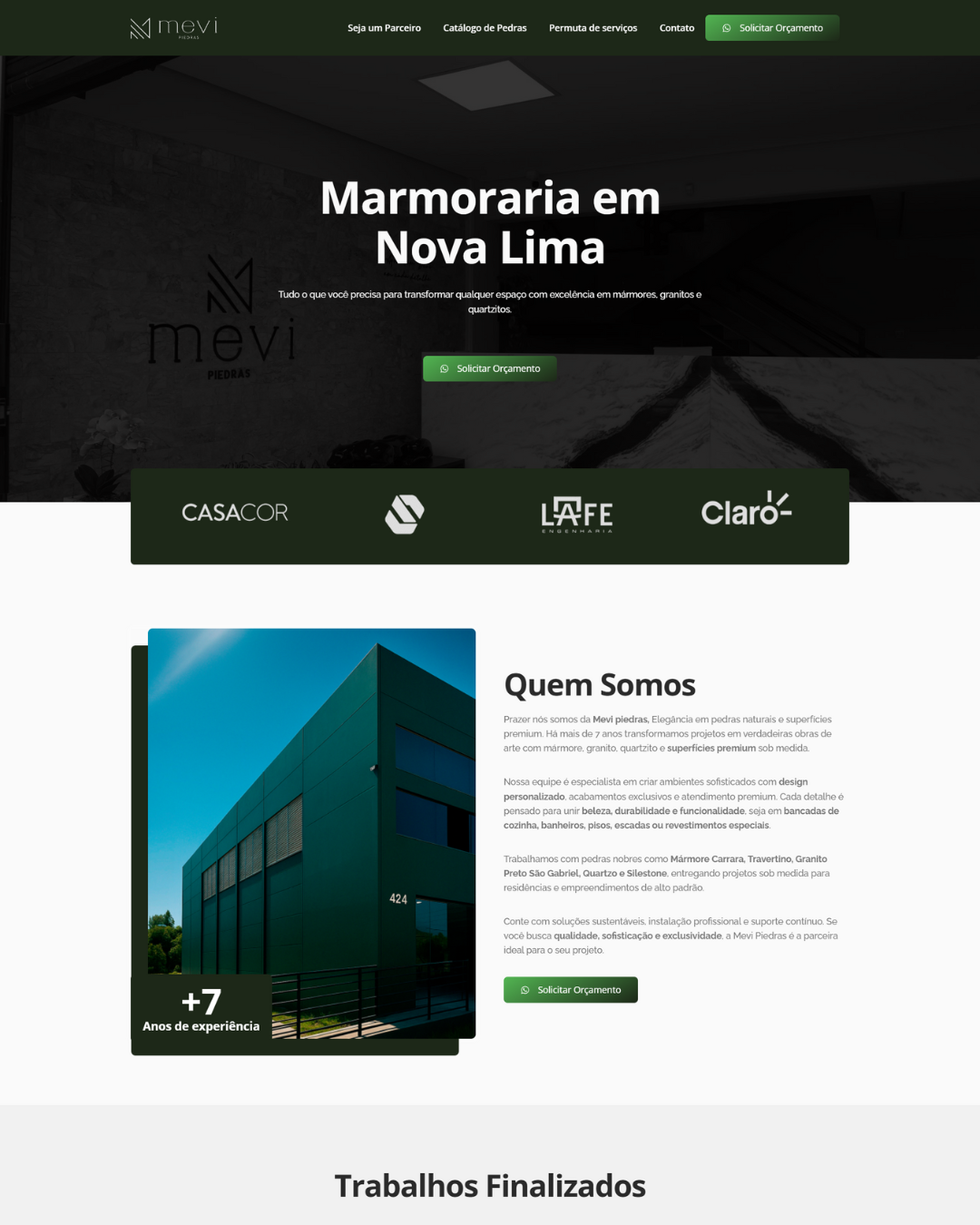 Marmoraria de alto padrão especializada em mármores, granitos e superfícies premium. O site reforça elegância, credibilidade e atendimento sob medida, destacando seus projetos sofisticados e durabilidade superior.