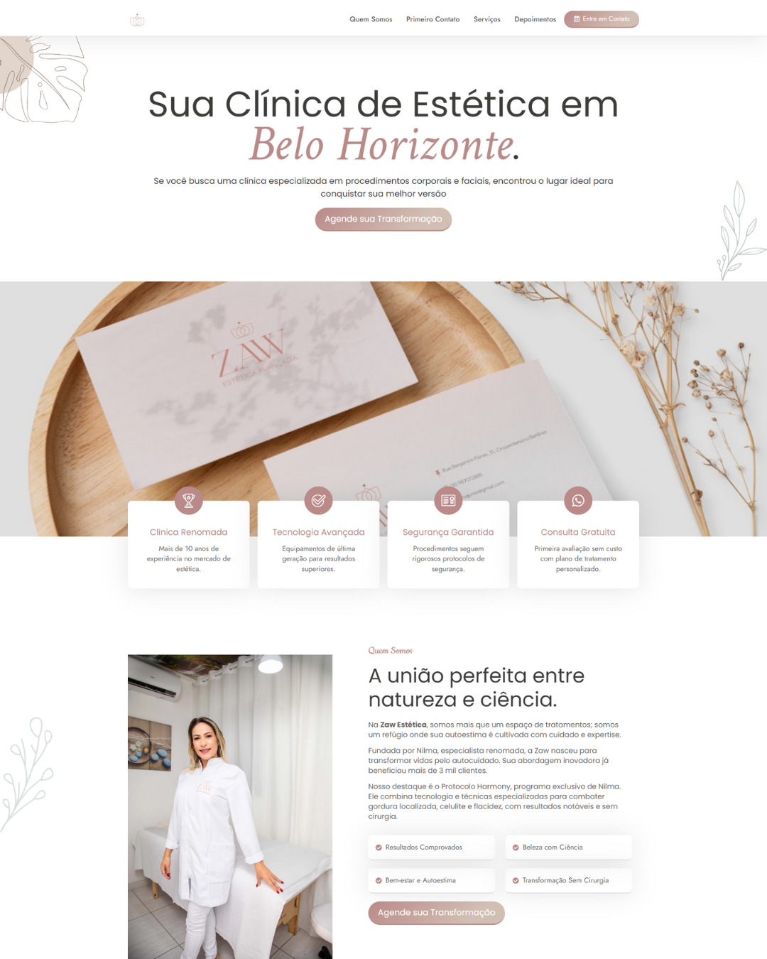Clínica de estética em Belo Horizonte que alia estética avançada e bem-estar através de protocolos exclusivos. O website transmite segurança, profissionalismo e acolhimento, promovendo experiências estéticas transformadoras.