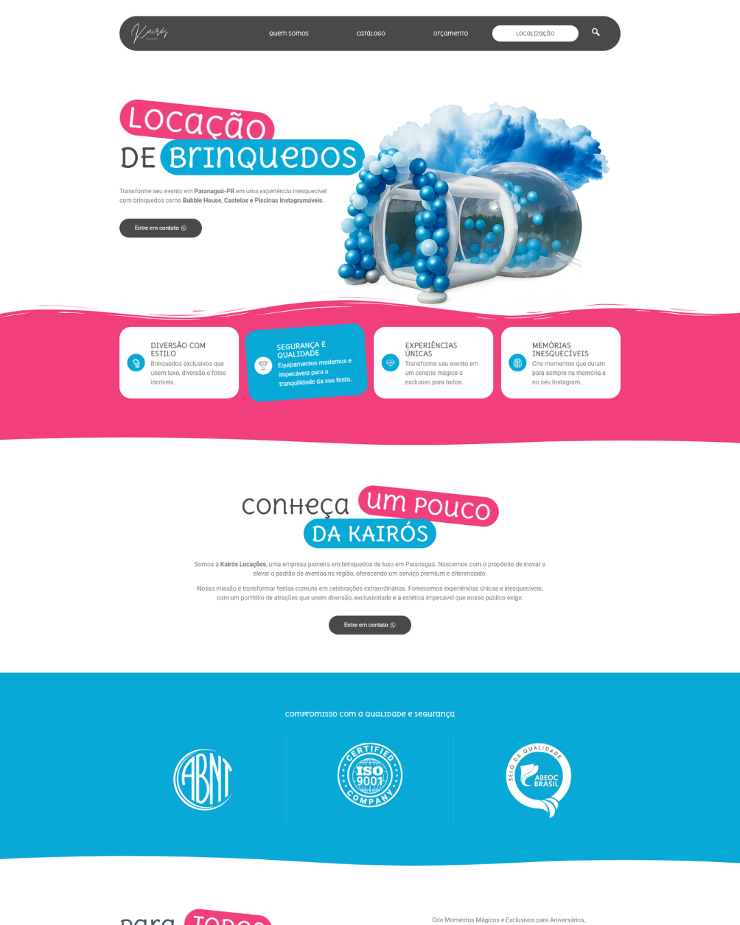 Empresa especializada em locações de brinquedos de luxo, que oferece atrações sofisticadas e cenários memoráveis para eventos em Paranaguá-PR. O site transmite diversão com estilo, segurança e experiência visual marcante para clientes exigentes.